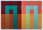 A unique piece of textile art, hand-worked with yarn onto a clear perspex board.